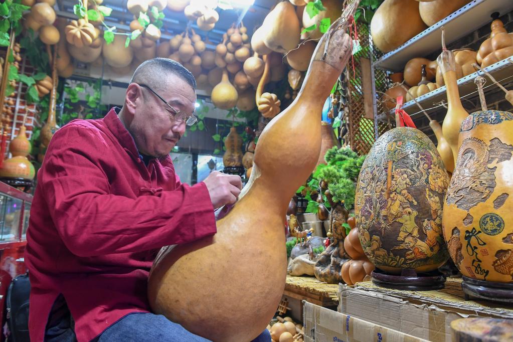 但是,侯景伟依然每天潜心创作,他想用最好的作品吸引更多年轻人来学习,把优秀传统技艺传承下去,让小葫芦“讲”出更多民俗故事。