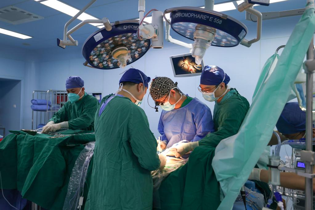 邱伟(右二)进行手术中。新华社记者 许畅 摄