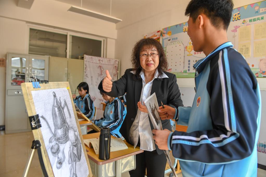 杨丽平用手语为学生上课。新华社记者 张楠 摄