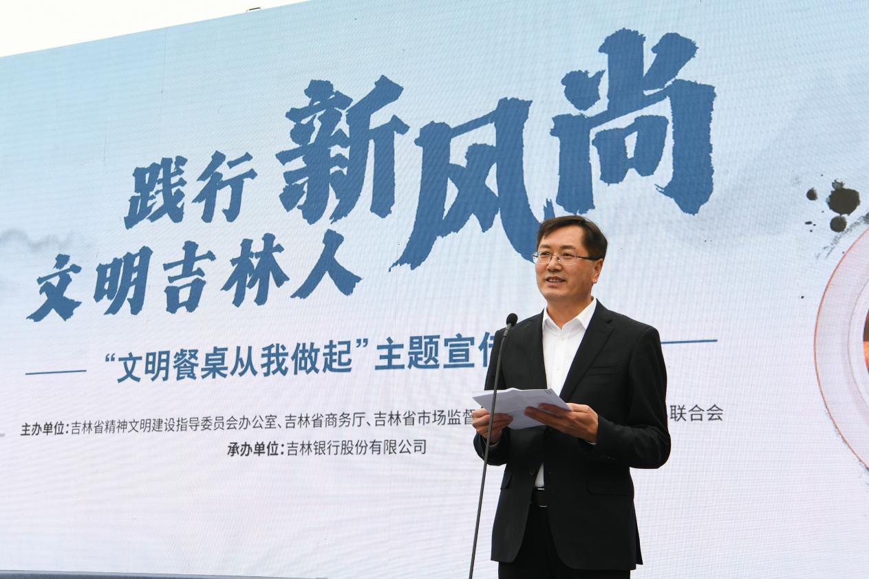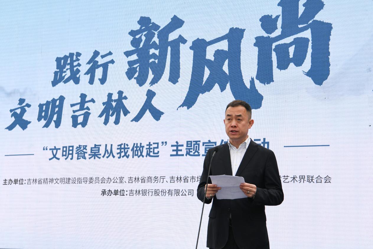 吉林银行党委专职副书记杨春光在致辞中表示,作为生在本土、长在本地的吉林银行,在经营管理上一直坚持“勤俭办企业”原则。特别是在全系统扎实开展“文明餐桌”宣传教育,倡导“公筷行动”和“光盘行动”,推动全系统干部职工逐步养成了节俭、绿色低碳的生活方式。吉林银行是吉林省人民自己的银行,是老百姓信赖的银行。近年来,加快改革变革,规模、效益、质量稳步提升,实现了稳健发展,并热心投身公益事业。近三年,实现利税46亿元,通过降低贷款利率、减免服务费等方式,累计为企业减费让利近10亿元。推进千亿斤粮食和千万头肉牛工程金融服务,为事关百姓民生的菜篮、菜盘工程助力。支持新时代文明实践中心建设,围绕绿色、安全、健康服务,正在逐步推出“公益+金融”的特色化社区金融服务。目前,已在全省30个社区建立了金融志愿者服务站。今后为在全社会形成文明健康、绿色环保生活方式再尽吉林银行一份力量、一份责任。