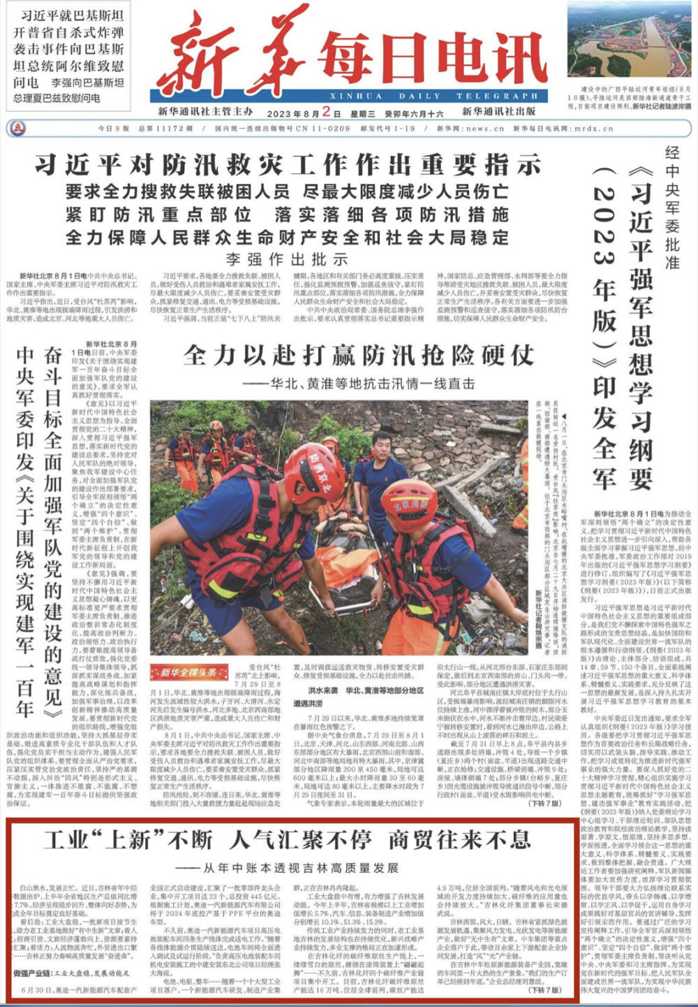 本周,结合吉林省委全会精神和全省半年经济数据,新华社记者深入一线采访,采写近3000字全省宏观经济报道,从年中账本透视吉林高质量发展;同时聚焦吉林多地展开防汛抢险救灾工作。相关稿件在《新华每日电讯》《半月谈》《经济参考报》、新华社客户端、新华网、新华网客户端、新华财经客户端等多平台以文字、图片、图表、音频和视频等融媒体方式进行展示。这些报道受到广泛关注,总浏览量超过3000万。