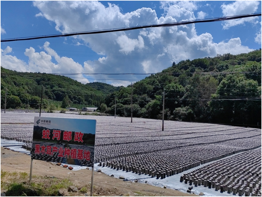 蛟河邮政依托黄松甸黑木耳特色产业,打造邮政黑木耳产业种植基地,与地方优质农业加工企业合作共建农产品加工供应基地,通过委托代加工模式,创建蛟河市分公司农产品自有品牌项目,构建起“邮政+农户+合作社(家庭农场)+上下游企业”产业链,实现对合作社和农产品销售的帮扶,助力解决农民“销路之困”、客户“质量之忧”。
