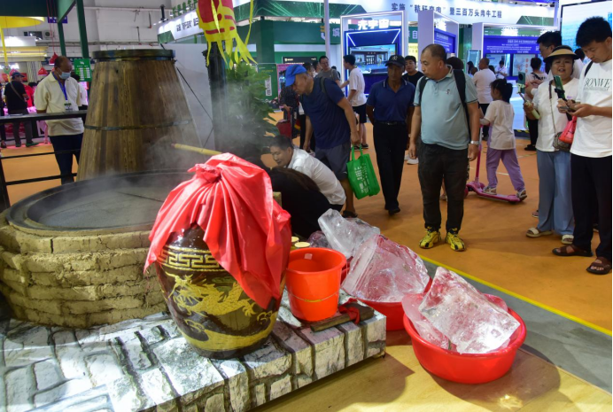 新华网长春8月26日电(记者周长庆)正在举行的长春农博会的二号馆吉林省大安市展位上,参观者的目光都被“斫冰烧酒”的现场烧酒场面吸引。作为我国最古老的辽代烧酒工艺,特别是利用冰块冷却的神奇和独特工艺,引起了人们的好奇,纷纷驻足观赏,并品尝现场蒸馏出来的六七十度的烧酒。