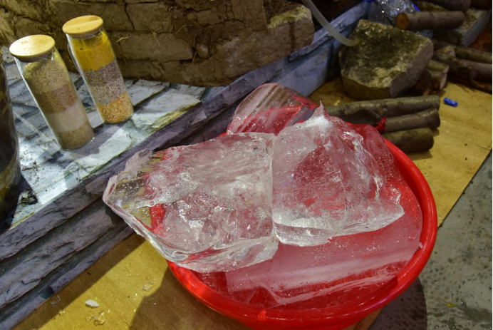 大安市大发实业有限公司(原大安酒厂)通过模拟试验,复活了辽代“斫冰烧酒”烧酒工艺过程。“斫冰”即砍砸冰块准备烧酒;“烧酒”做动词组解,意为点火蒸馏出酒,也可做名词解,为可以燃烧的酒,一词双关。“斫冰烧酒赤”不仅形象描写了当地酿造蒸馏酒的场面和过程,还点出了烧制蒸馏酒的独特工艺是加冰制冷。