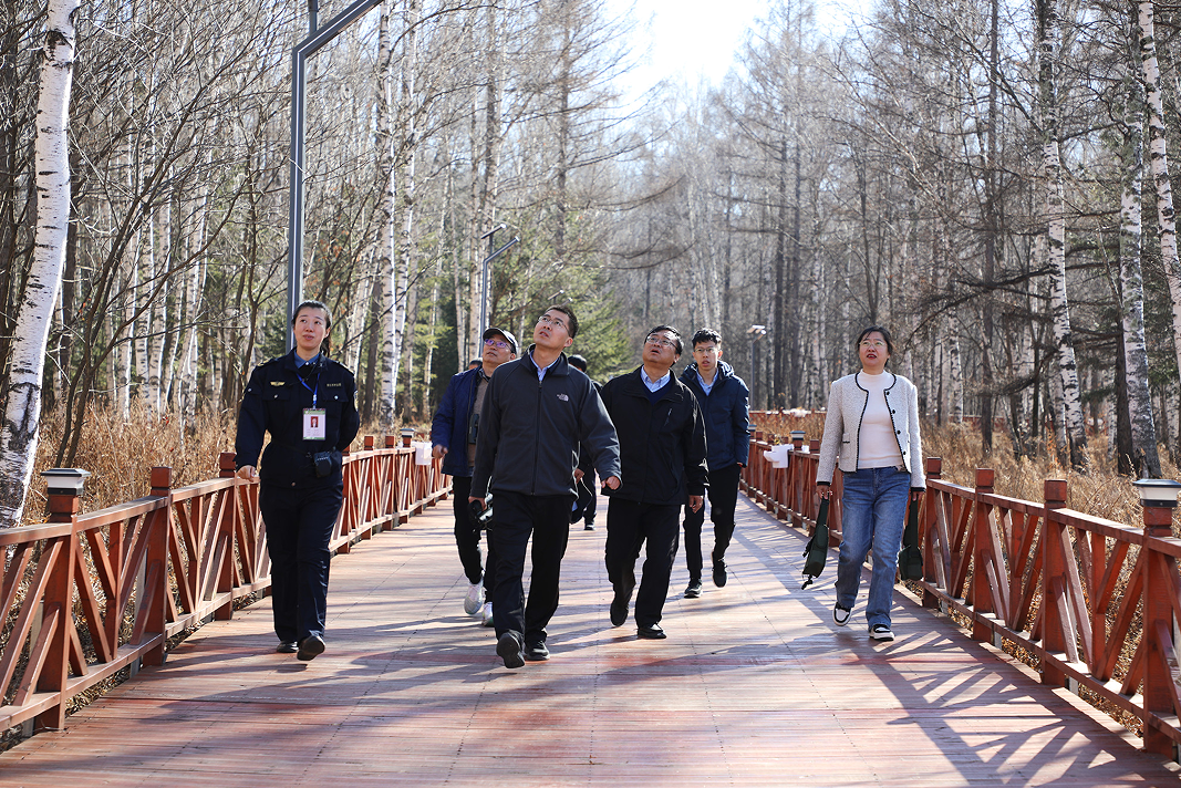国家林草局湿地管理司处长李明及专家组一行在副市长张仁国和省、市林草部门相关负责同志的陪同下,到秋梨沟国家湿地公园现场考察,详细了解基础设施建设、保护与管理等相关情况。