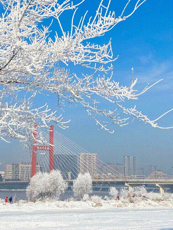 “一江寒水清,两岸琼花凝”
