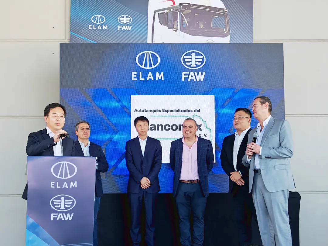 近日,一汽解放与墨西哥经销商ELAM签订1000台出口订单。正在墨西哥市场调研的一汽解放党委委员、常务副总经理于长信见证签约,一汽解放海外产品线(解放国际公司)总经理冷长春主持活动。
