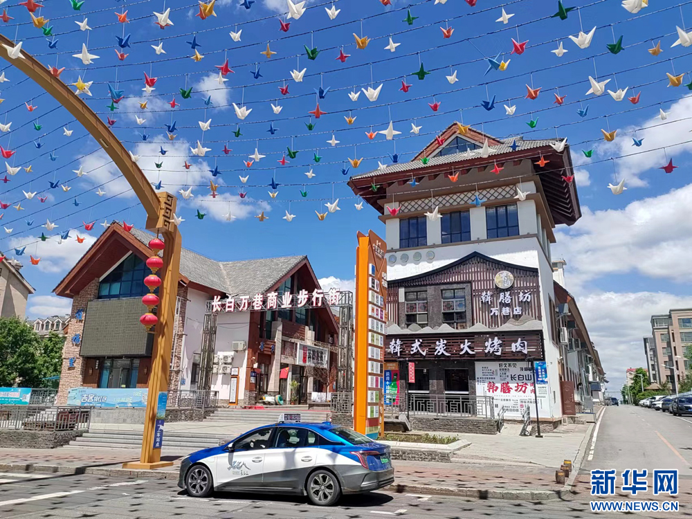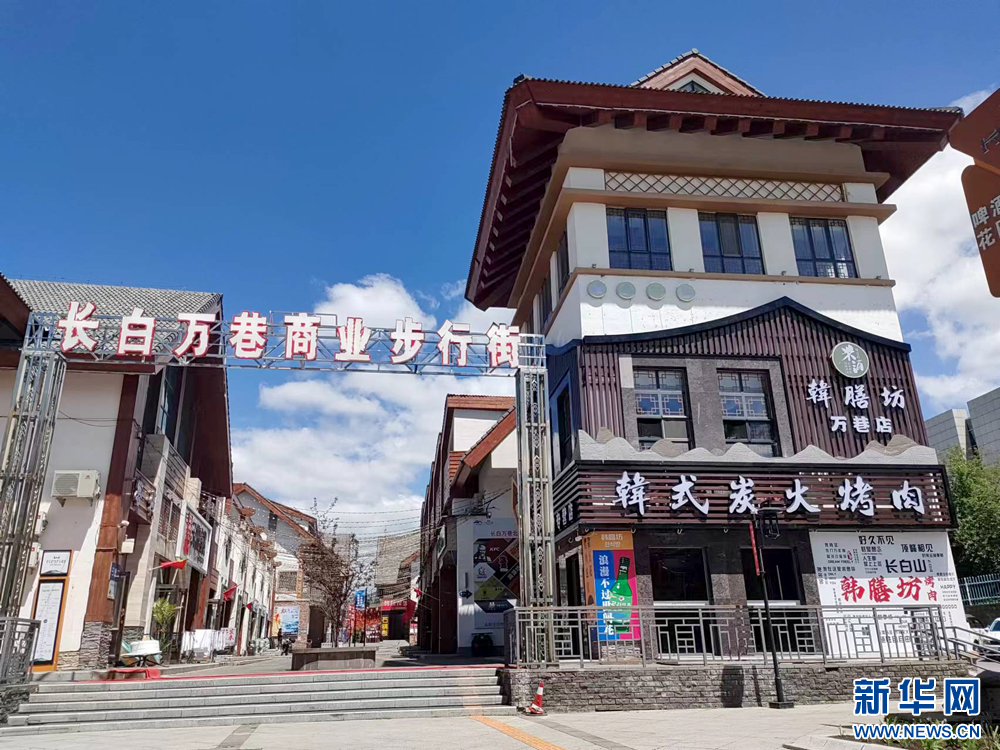 新华网长春5月30日电(黄维)驻足吉林省长白山保护开发区池北区长白山大街,沿白牛槭路向西而行,走不多远就能看到一条干净整洁、别具特色、商业氛围浓厚的街市,这里是长白万巷商业步行街。