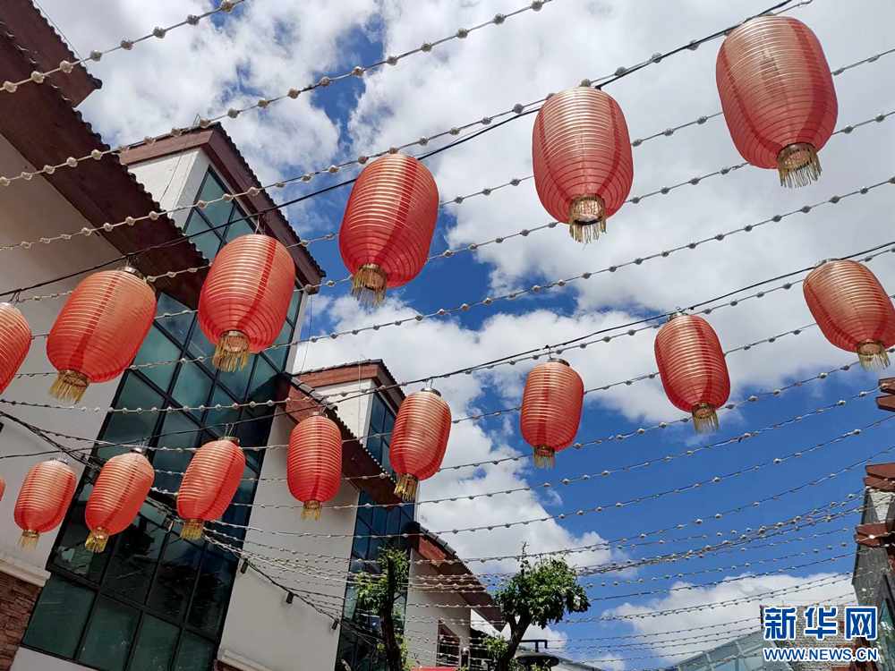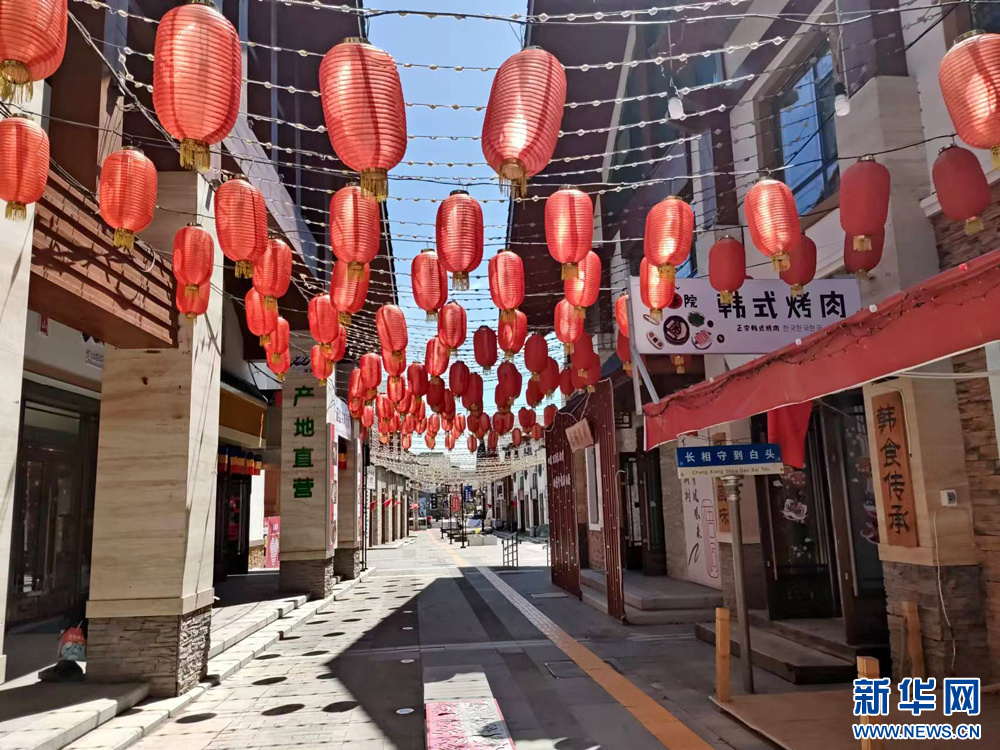 长白万巷商业步行街的红灯笼装饰营造出喜庆氛围 新华网发 黄维摄