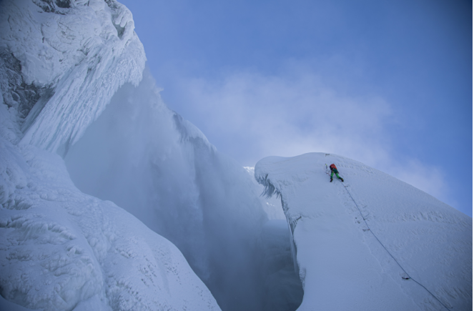 长白山攀冰大会参赛者在攀冰