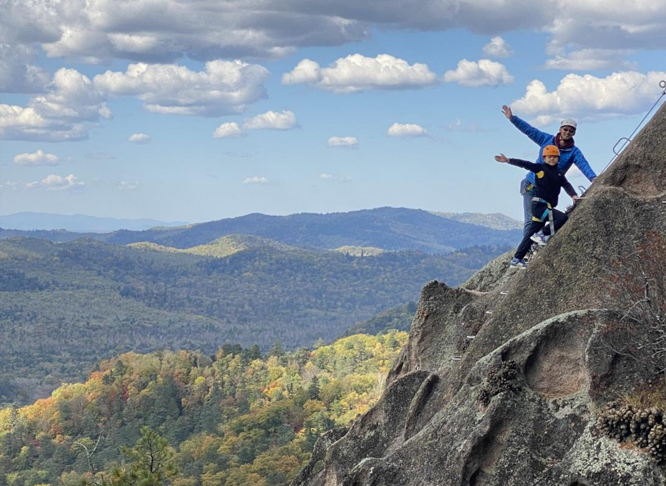 红石峰景区户外爱好者在攀崖