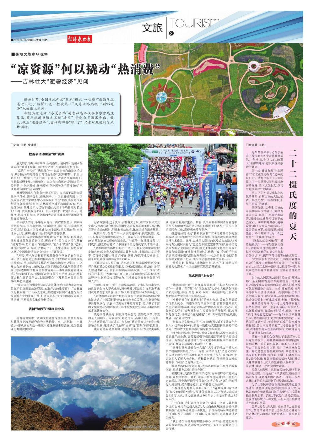 近年来,吉林突出冰雪和避暑“双产业”架构,以品牌思维构建现代化旅游业体系,形成冬有“长白天下雪”,夏有“清爽吉林·22℃夏天”的旅游IP。“让‘冷’资源‘热’起来,让‘凉’资源‘火’起来,吉林走出了一条生态优先、绿色发展之路。”中国旅游协会副会长杜一力评价说。