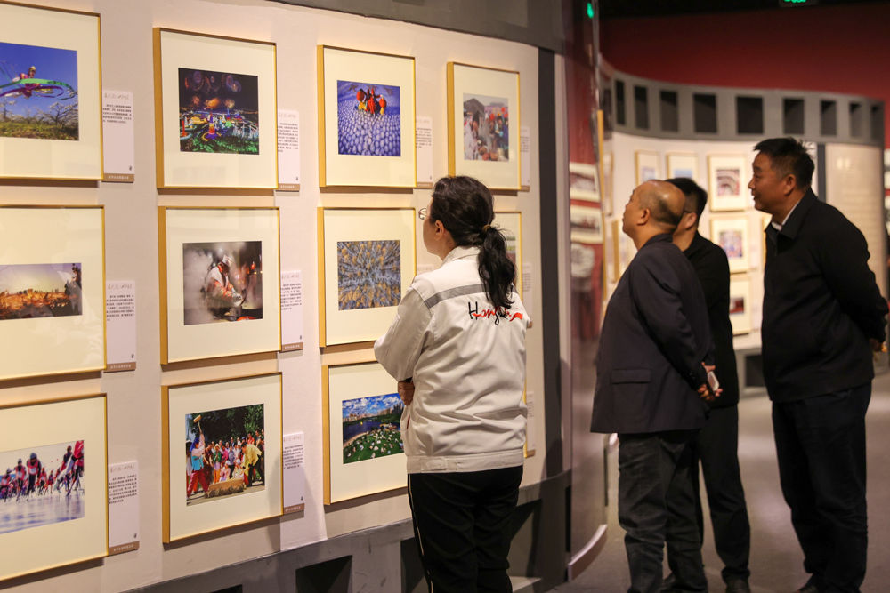 9月30日,“国社之镜·世纪光影”新华社新闻摄影展吉林分展在吉林省博物院开展,参观者在参观展出的图片。