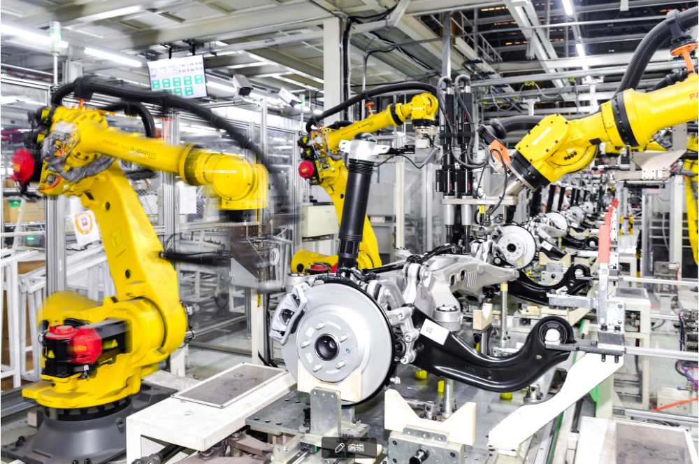2024年4月24日,在位于吉林长春的中国一汽红旗制造中心蔚山厂区总装车间内,生产线上的智能机械臂对车辆后桥进行装配作业。 新华社记者 许畅 摄