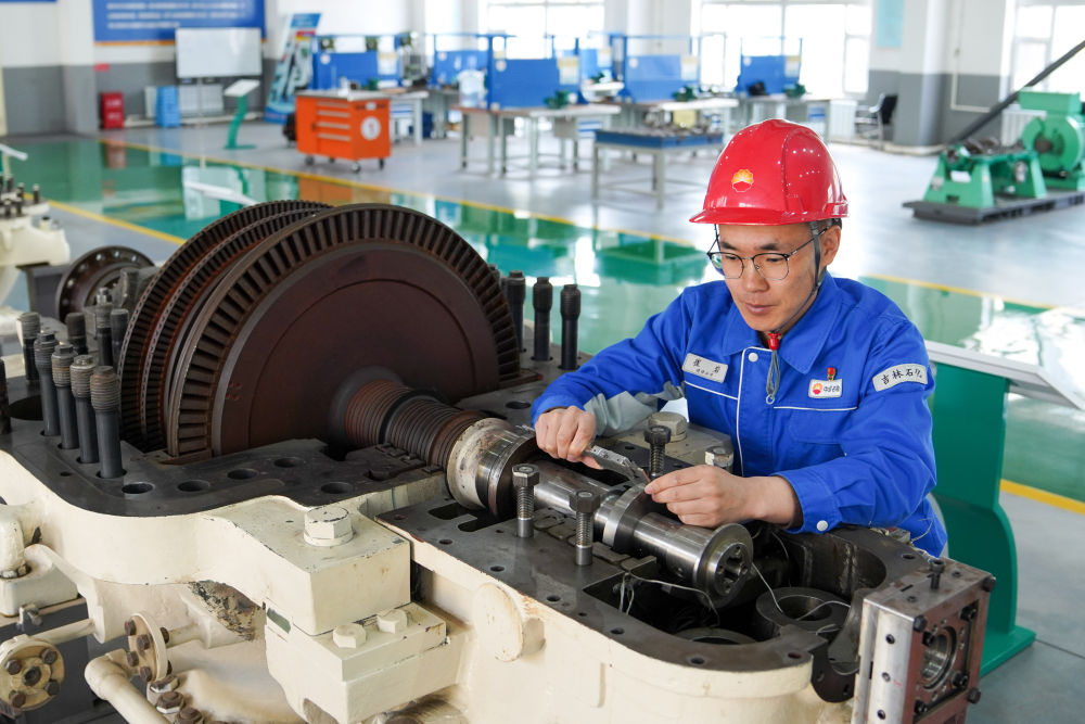“五一”假期,依然有许多劳动者坚守岗位。在中国石油吉林石化公司生产车间,钳工崔岩正拿着扳手检修设备。作为中国石油吉林石化公司建修公司东部检修车间维修九班班长,为设备“把脉问诊”是他和班组成员的日常。