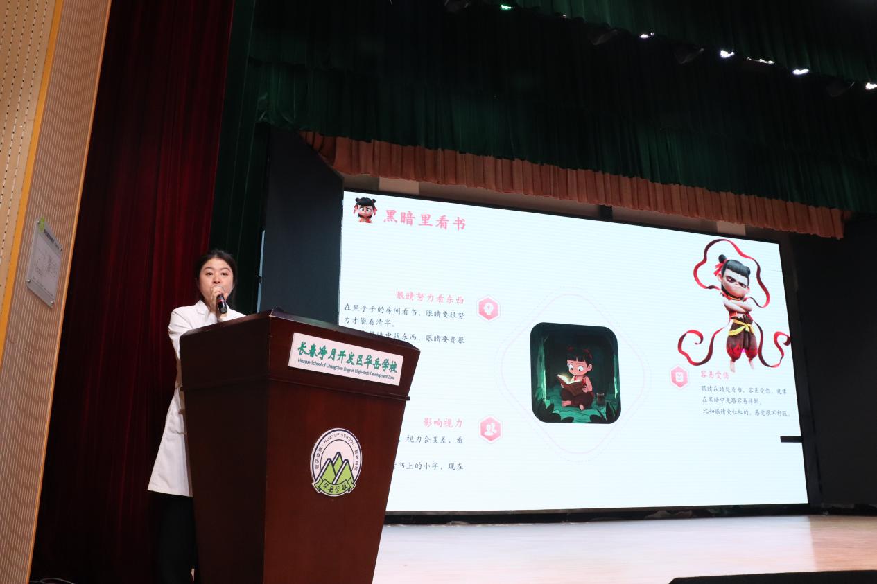 5月15日,“科普惠民,健康同行”走基层活动在长春净月高新技术产业开发区华岳学校举行,吉林省健康科普专家、吉林省前卫医院医生王艳艳带来儿童近视防控健康知识讲座,学校百余位师生参加。