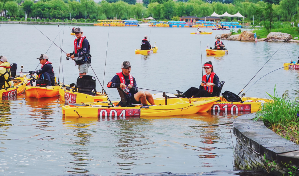 上午10时,随着一声清脆的裁判锣响,比赛正式开始。选手们驾艇竞发,到达指定地点,众人迅速抛竿,各不相让。比赛采用卡亚克双人接力赛制:每组两人协作,首发钓获5尾有效鱼后需返回码头交接称重。最终名次按两日总重量排名。目标鱼种为鲈鱼、黑鱼等,所有有效目标鱼体长必须大于或等于20厘米。