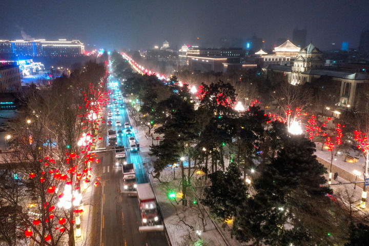 晚上8时许,长春市新民大街上,智能化清雪作业令外地游客十分震撼。