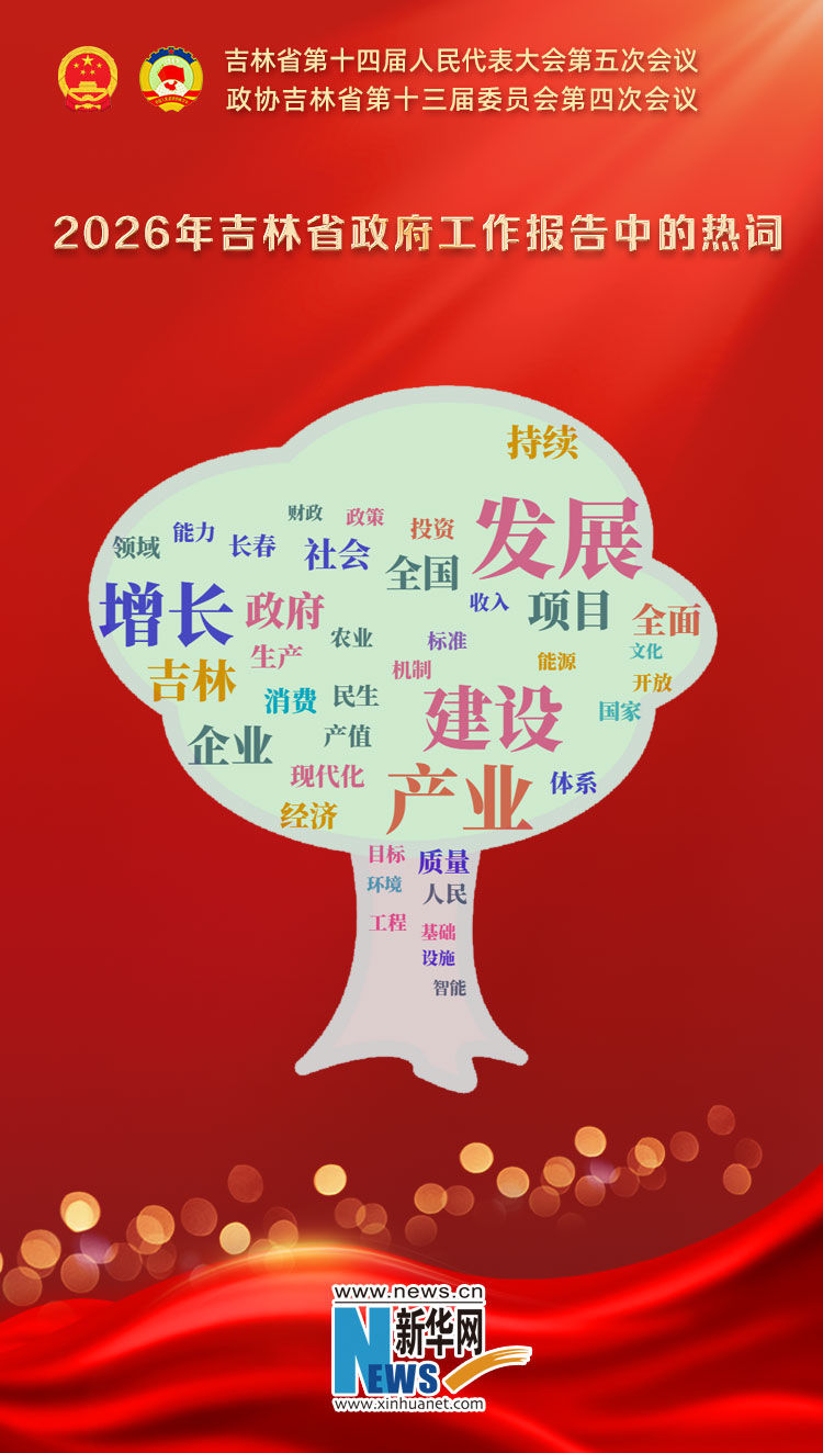 经新华社“采编助手”大数据梳理,2026年吉林省政府工作报告中,“发展”出现67次,“建设”出现57次,“产业”出现54次,“企业”出现32次,“项目”出现29次,这些高频热词凸显吉林省政府推动吉林全面振兴率先实现新突破的工作重点,也展现出吉林推动高质量发展的良好态势。